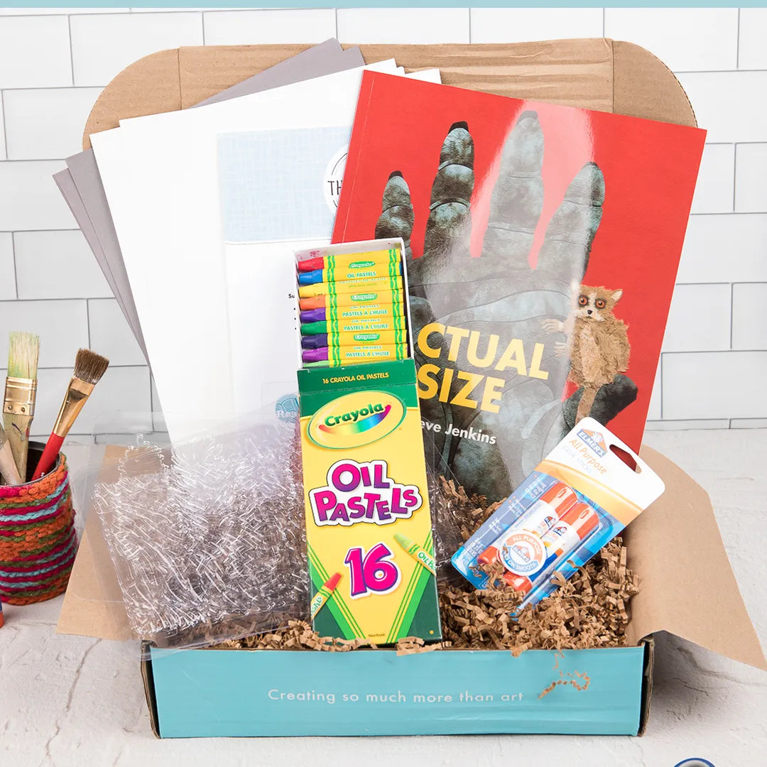 A pre-paid Kids’ Art Box subscription offers convenience for gift-givers or parents. Shipping is just a flat $5.50 per month, paid up front. Each month features a different art project for elementary age children, all the supplies needed, a book that relates to the project, and easy to follow instructions. Regular size includes enough supplies for 2 children. Family size includes enough for 4. Great for birthday & holiday gifts! Perfect for homeschoolers!